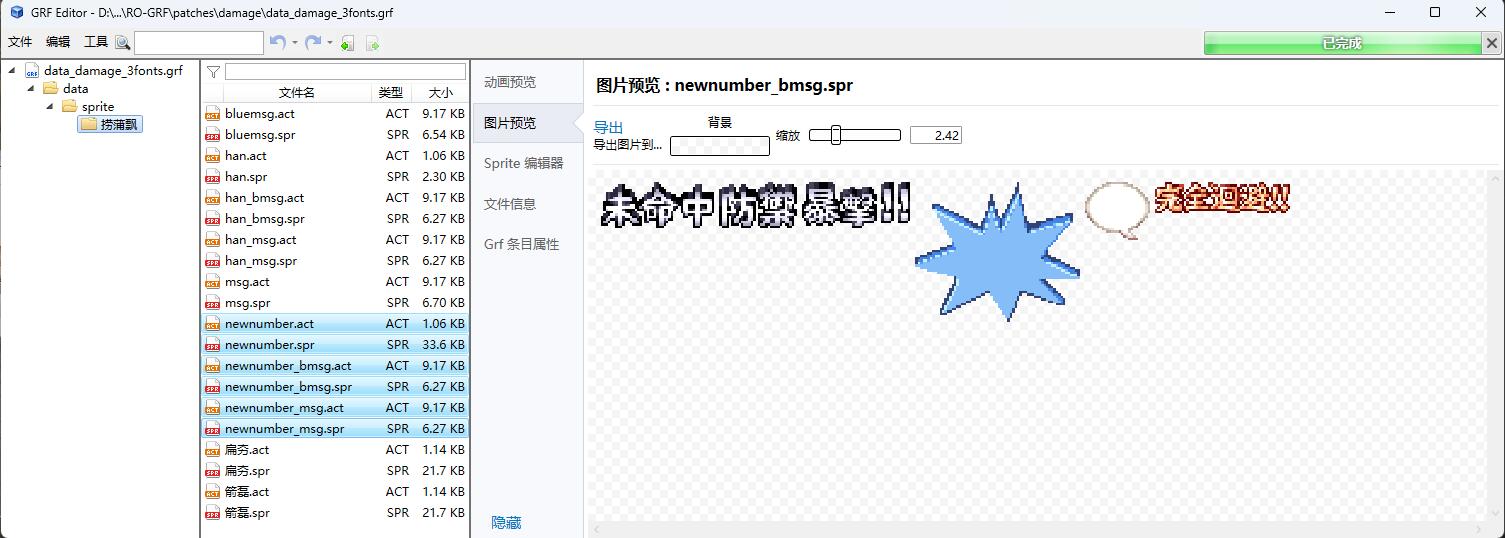 : 红底的 Miss、暴击、完全回避 图档data/sprite/捞蒲飘/newnumber_msg.act