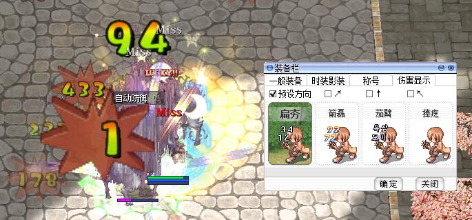 按 Alt + Q 打开装备窗口后,切换到第 4 个 tab 【伤害显示】,可以看见 4 个伤害字型选项: