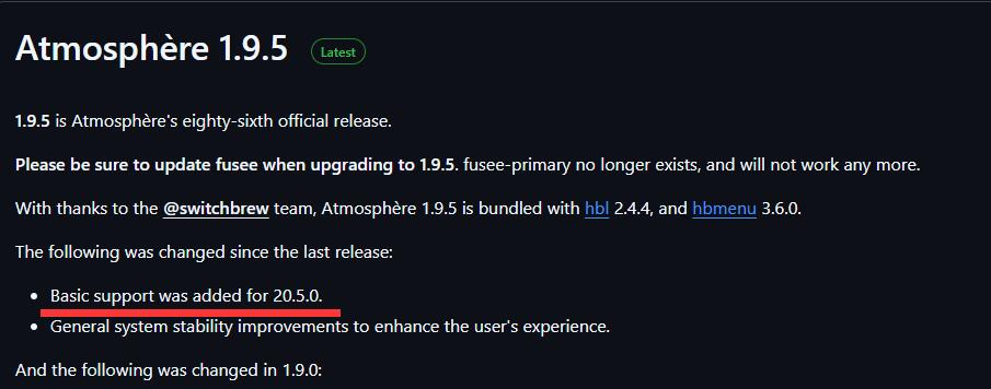 20.5.0 - 在大气层官方 Github 的 发布页面 找到最新版的