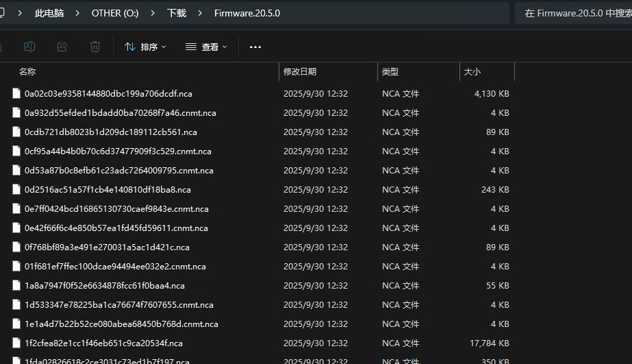 不论从哪里下载的系统固件,解压后都是一堆 *.nca 文件: