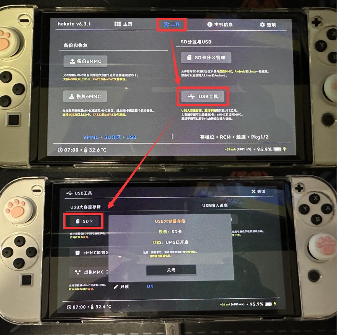 - 依次点击【工具】【USB 工具】【SD 卡】