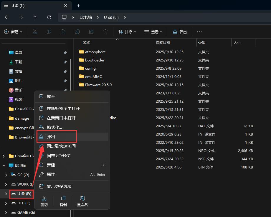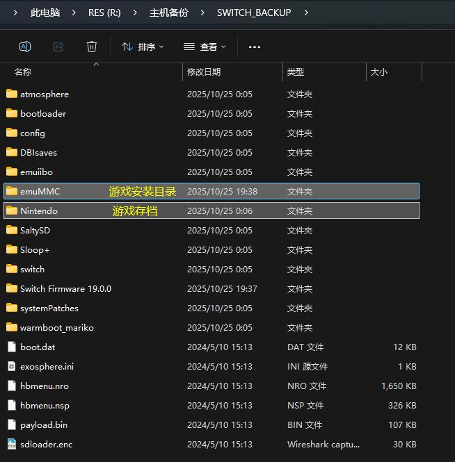 emuMMC: 已安装的游戏存储目录Nintendo: 已玩过的游戏存档目录