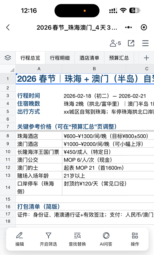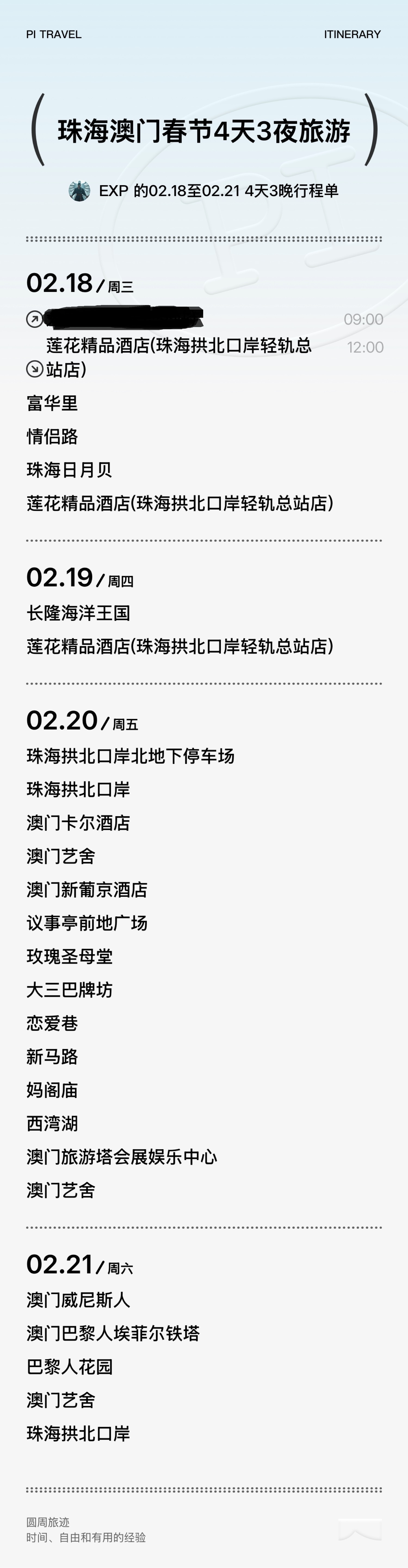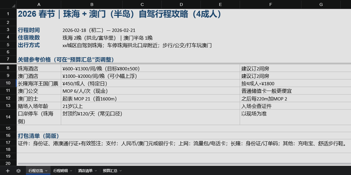 譬如这就是本文制作的《2026春节_珠海澳门_4天3夜自由行攻略》:
