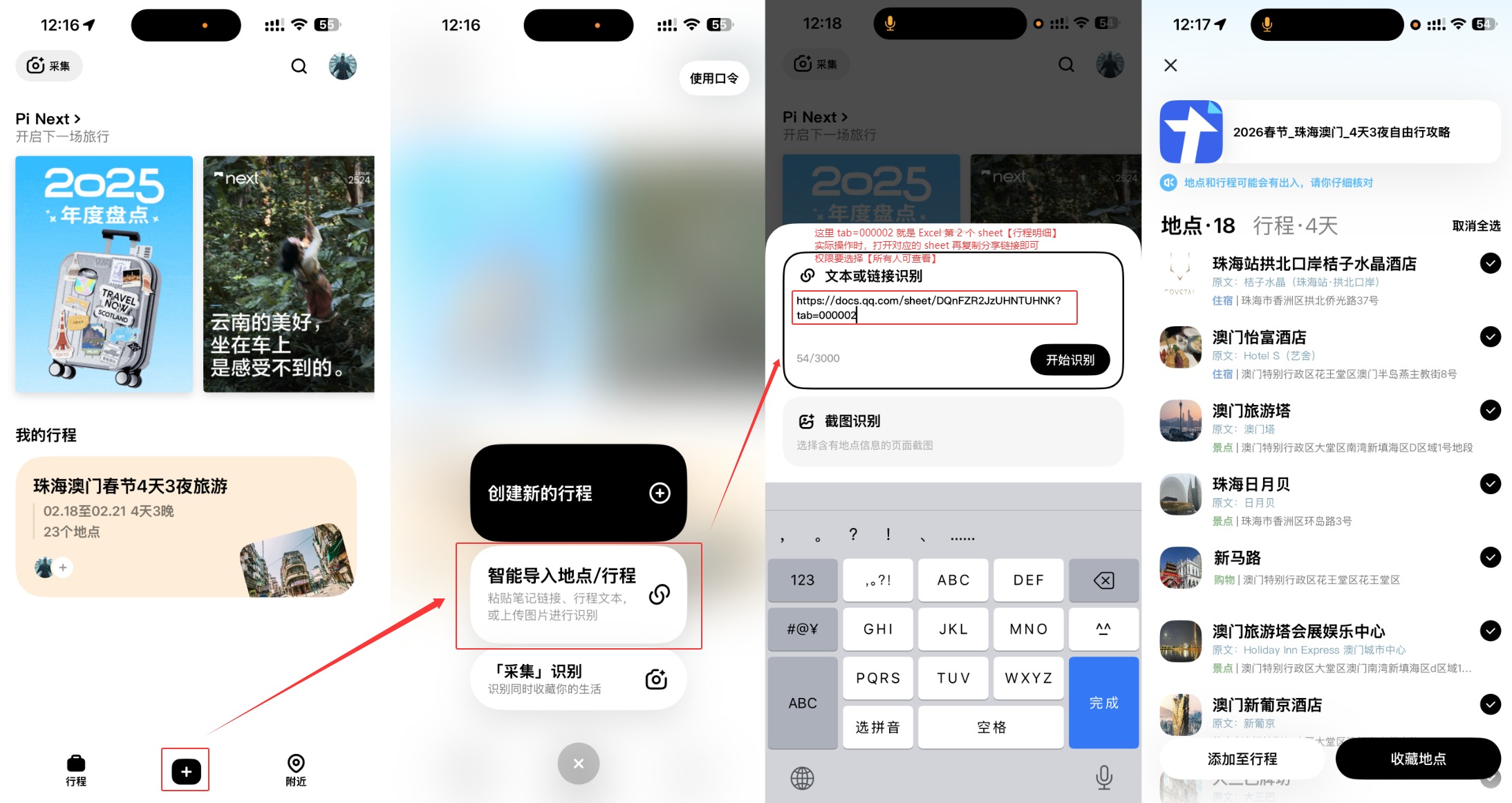 +按钮新增行程 - 智能导入地点/行程