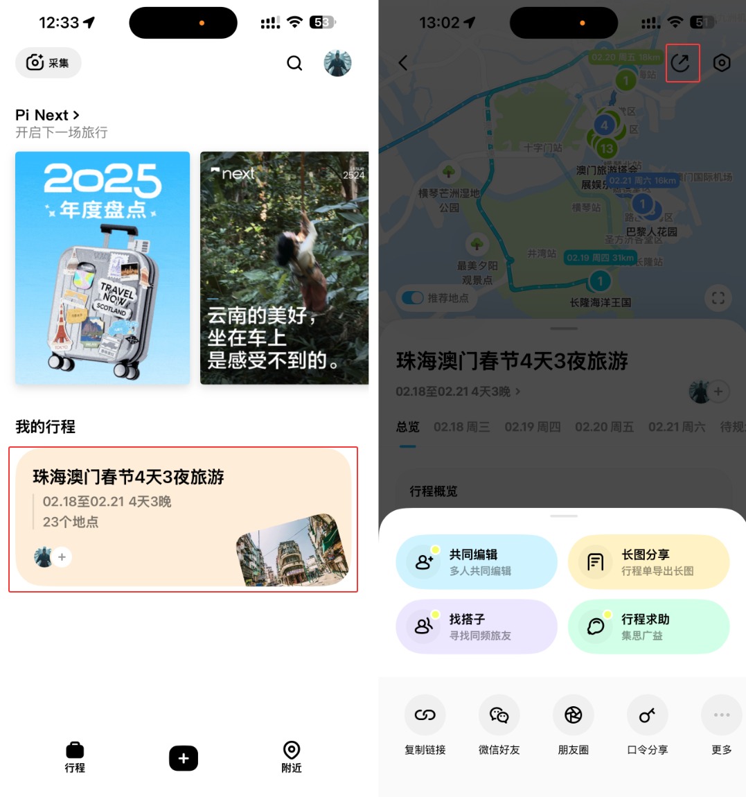 另外可以把行程分享给家人/旅行搭子一起编辑: